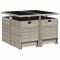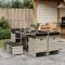 Ensemble à manger de jardin et coussins 9 pcs gris clair rotinCet ensemble de salle à manger de jardin est un excellent choix pour les repas en plein air ou pour vous détendre dans le jardin, dans l'arrière-cour ou sur la terrasse. Matériau durable : la résine tressée, également connue sous le nom de poly rotin, est un matériau synthétique solide et nécessitant peu d'entretien qui ressemble au rotin naturel. Il est léger, facile à nettoyer et couramment utilisé pour les meubles d'extérieur en raison de sa durabilité et de ses propriétés de résistance aux intempéries. Rangement compact : ces chaises sont dotées d'un dossier rabattable, ce qui permet de les ranger facilement sous la table. Une fois pliées, elles se rangent parfaitement sous la table, formant un cube peu encombrant. De plus, les tabourets peuvent également être rangés sous les chaises, maximisant encore davantage l'efficacité de l'espace. Expérience d'assise confortable : ce mobilier d'extérieur, doté de coussins épais, offre une expérience d'assise confortable. Housse amovible et lavable : ces coussins de siège sont dotés de housses amovibles pour un lavage et un entretien faciles. Dessus en verre : le dessus de la table d'extérieur est fabriqué en verre trempé solide et durable, ce qui le rend facile à nettoyer avec un chiffon humide et ajoute une touche d'élégance à votre espace extérieur. Bon à savoir : Pour que vos meubles d'extérieur restent beaux, nous vous recommandons de les protéger avec une housse imperméable. Maximum 110 kg par siège. Soyez conscient du risque de feu ouvert et d'autres sources de forte chaleur à proximité de l'appareil.