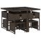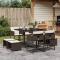 Ensemble à manger de jardin et coussins 9 pcs marron poly rotinCet ensemble de salle à manger de jardin est un excellent choix pour les repas en plein air ou pour vous détendre dans le jardin, dans l'arrière-cour ou sur la terrasse. Matériau durable : la résine tressée, également connue sous le nom de poly rotin, est un matériau synthétique solide et nécessitant peu d'entretien qui ressemble au rotin naturel. Il est léger, facile à nettoyer et couramment utilisé pour les meubles d'extérieur en raison de sa durabilité et de ses propriétés de résistance aux intempéries.Rangement compact : ces chaises sont dotées d'un dossier rabattable, ce qui permet de les ranger facilement sous la table. Une fois pliées, elles se rangent parfaitement sous la table, formant un cube peu encombrant. De plus, les tabourets peuvent également être rangés sous les chaises, maximisant encore davantage l'efficacité de l'espace.Expérience d'assise confortable : ce mobilier d'extérieur, doté de coussins épais, offre une expérience d'assise confortable.Housse amovible et lavable : ces coussins de siège sont dotés de housses amovibles pour un lavage et un entretien faciles. Les housses de coussin ont un rabat à l'arrière pour une fixation facile aux dossiers.Dessus en verre : le dessus de la table d'extérieur est fabriqué en verre trempé solide et durable, ce qui le rend facile à nettoyer avec un chiffon humide et ajoute une touche d'élégance à votre espace extérieur. Bon à savoir : Pour que vos meubles d'extérieur restent beaux, nous vous recommandons de les protéger avec une housse imperméable. Maximum 110 kg par siège.