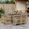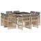 Ensemble à manger de jardin et coussins 9 pcs mélange beigeCet ensemble de salle à manger de jardin est un excellent choix pour les repas en plein air ou pour vous détendre dans le jardin, dans l'arrière-cour ou sur la terrasse. Matériau durable : la résine tressée, également connue sous le nom de poly rotin, est un matériau synthétique solide et nécessitant peu d'entretien qui ressemble au rotin naturel. Il est léger, facile à nettoyer et couramment utilisé pour les meubles d'extérieur en raison de sa durabilité et de ses propriétés de résistance aux intempéries. Rangement compact : ces chaises sont dotées d'un dossier rabattable, ce qui permet de les ranger facilement sous la table. Une fois pliées, elles se rangent parfaitement sous la table, formant un cube peu encombrant. Expérience d'assise confortable : ce mobilier d'extérieur, doté de coussins épais, offre une expérience d'assise confortable. Housse amovible et lavable : ces coussins sont dotés de housses amovibles pour un lavage et un entretien faciles. Les housses de coussin ont un rabat à l'arrière pour une fixation facile aux dossiers. Dessus en verre : le dessus de la table d'extérieur est fabriqué en verre trempé solide et durable, ce qui le rend facile à nettoyer avec un chiffon humide et ajoute une touche d'élégance à votre espace extérieur. Bon à savoir : Pour que vos meubles d'extérieur restent beaux, nous vous recommandons de les protéger avec une housse imperméable.