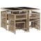Ensemble à manger de jardin et coussins 9 pcs mélange beigeCet ensemble de salle à manger de jardin est un excellent choix pour les repas en plein air ou pour vous détendre dans le jardin, l'arrière-cour ou le patio. Matériau durable : la résine tressée, également connue sous le nom de poly rotin, est un matériau synthétique solide et nécessitant peu d'entretien qui ressemble au rotin naturel. Il est léger, facile à nettoyer et couramment utilisé pour les meubles d'extérieur en raison de sa durabilité et de ses propriétés de résistance aux intempéries. Rangement compact : ces chaises sont dotées d'un dossier rabattable, ce qui permet de les ranger facilement sous la table. Une fois pliées, elles se rangent parfaitement sous la table, formant un cube peu encombrant. Expérience d'assise confortable : ce mobilier d'extérieur, doté de coussins épais, offre une expérience d'assise confortable. Housse amovible et lavable : ces coussins de siège sont dotés de housses amovibles pour un lavage et un entretien faciles. Les housses de coussin ont un rabat à l'arrière pour une fixation facile aux dossiers. Dessus en verre : le dessus de la table d'extérieur est fabriqué en verre trempé solide et durable, ce qui le rend facile à nettoyer avec un chiffon humide et ajoute une touche d'élégance à votre espace extérieur. Bon à savoir : Pour que vos meubles d'extérieur restent beaux, nous vous recommandons de les protéger avec une housse imperméable.