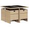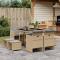 Ensemble à manger de jardin et coussins 9 pcs mélange beige Cet ensemble de salle à manger de jardin est un excellent choix pour les repas en plein air ou pour vous détendre dans le jardin, dans l'arrière-cour ou sur la terrasse. Matériau durable : la résine tressée, également connue sous le nom de poly rotin, est un matériau synthétique solide et nécessitant peu d'entretien qui ressemble au rotin naturel. Il est léger, facile à nettoyer et couramment utilisé pour les meubles d'extérieur en raison de sa durabilité et de ses propriétés de résistance aux intempéries. Rangement compact : ces chaises sont dotées d'un dossier rabattable, ce qui permet de les ranger facilement sous la table. Une fois pliées, elles se rangent parfaitement sous la table, formant un cube peu encombrant. De plus, les tabourets peuvent également être rangés sous les chaises, maximisant encore davantage l'efficacité de l'espace. Expérience d'assise confortable : ce mobilier d'extérieur, doté de coussins épais, offre une expérience d'assise confortable. Housse amovible et lavable : ces coussins de siège sont dotés de housses amovibles pour un lavage et un entretien faciles. Dessus en verre : le dessus de la table d'extérieur est fabriqué en verre trempé solide et durable, ce qui le rend facile à nettoyer avec un chiffon humide et ajoute une touche d'élégance à votre espace extérieur. Bon à savoir : Pour que vos meubles d'extérieur restent beaux, nous vous recommandons de les protéger avec une housse imperméable. Maximum 110 kg par siège. Soyez conscient du risque de feu ouvert et d'autres sources de forte chaleur à proximité de l'appareil.
