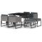 Ensemble à manger de jardin coussins 9pcs Résine tressée GrisCet ensemble à manger de jardin tendance pour 8 personnes, au design élégant et moderne, est destiné à être le point de mire de votre jardin ou terrasse ! L'ensemble de salle à manger, en résine tressée résistante aux intempéries et en verre trempé, est facile à nettoyer avec un chiffon humide. Les cadres en acier ajoutent à la robustesse. Grâce à sa construction légère, l'ensemble est facile à déplacer. Les coussins épais et moelleux rembourrés de fibre de coton sont très confortables. Les housses, équipées de fermeture éclair, sont facilement amovibles et lavables. De plus, les tabourets peuvent être placés proprement sous la table lorsqu'ils ne sont pas utilisés pour économiser de l'espace. Remarque : nous vous recommandons de couvrir l'ensemble pendant la pluie, la neige et le gel pour prolonger sa durée de vie de service.