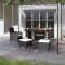 Ensemble à manger de jardin coussins 9pcs Résine tressée NoirCet ensemble de salle à manger de jardin est une combinaison parfaite de style et de fonctionnalité et est destiné à être le point de mire de votre jardin, balcon ou patio. Avec un cadre en acier robuste enveloppé de résine tressée résistante aux intempéries, les chaises de jardin sont à l'épreuve de la rouille et de la moisissure, offrant des années de détente de qualité. Les accoudoirs sont joliment décorés avec du bois d'acacia massif avec une finition à l'huile naturelle, ce qui apporte un sentiment de charme rustique. La table d'extérieur présente un dessus de table en WPC, facile à nettoyer et adapté à une utilisation à l'extérieur. Le cadre en aluminium assure également la stabilité et la robustesse. De plus, les coussins bien rembourrés offrent un confort ultime pendant votre temps assis. Cet ensemble de salle à manger de patio est facile à déplacer grâce à sa construction légère. Remarque : afin de prolonger la durée de vie des meubles d'extérieur, nous vous recommandons de les protéger avec une housse imperméable. Maximum 110 kg par siège. Soyez conscient du risque de feux ouverts et d'autres sources de forte chaleur à proximité du produit. ,
