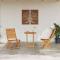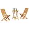 Ensemble de mobilier d'extérieur 3 pcs 60 x 60 x 75 cmCe Set de Bistro Pliable est parfait pour améliorer les petits espaces de jardin avec son charme rustique et son design fonctionnel. Conçu pour le plaisir en plein air, sa surface lisse et sa finition huilée ajoutent une touche naturelle à toute terrasse ou zone de jardin. Le mécanisme pliant et la structure légère en font un choix polyvalent pour ceux qui souhaitent maximiser la fonctionnalité sans compromettre le style. Matériau de Haute Qualité : Exclusivement fabriqué en bois d'acacia massif, ce set de meubles apporte durabilité et une texture lisse et attrayante à tout espace extérieur. Le bois d'acacia est choisi pour sa résistance à diverses conditions climatiques, garantissant une utilisation durable. Design Fonctionnel : L'ensemble comprend une table avec un trou pour parasol de 5 cm de diamètre, offrant une option pour se protéger du soleil ou des améliorations décoratives. Le design convient à divers usages pratiques tout en ajoutant une valeur esthétique. Caractéristique Économisant de l'Espace : La nature pliante de l'ensemble permet un rangement pratique et un transport facile. Le mécanisme pliant est actionné manuellement pour garantir simplicité et facilité, ce qui le rend idéal pour une utilisation saisonnière ou pour réorganiser les aménagements de jardin. Détails Élégants : La finition huilée et la couleur brun naturel ajoutent une touche rustique, mettant en valeur la beauté du bois d'acacia. Cette finition offre également une couche de protection contre l'humidité et améliore le motif naturel du bois. Entretien Facile : L'entretien implique simplement d'essuyer avec un chiffon humide, maintenant sa fraîcheur dans le temps. Il est conseillé d'utiliser une housse lorsqu'il n'est pas utilisé.