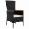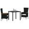 Ensemble de repas de jardin 3 pcs Noir 80 x 80 x 73 cmCet ensemble de salon de jardin chic amène une ambiance tendance à votre espace extérieur. Son design épuré transforme n'importe quel jardin ou patio en un super lieu pour se retrouver entre amis, en famille, ou juste pour se détendre seul. La texture du poly rotin, associée à un plateau en verre trempé, crée un combo fabuleux qui déchire et fonctionne parfaitement. Que vous receviez des gens ou que vous profitiez d'un moment tranquille, cet ensemble de salon vous offre à la fois confort et style. Poly Rattan Tissé : Ce poly rotin a non seulement de la classe, mais il est aussi durable et facile à entretenir. Il résiste aux UV et à l'eau, parfait pour le mobilier d'extérieur. Son aspect tissé ajoute une touche unique qui va bien avec les espaces extérieurs modernes. Dossier de Soutien : Avec sa belle finition, cet ensemble est joli sous tous les angles. Les dossiers en poly rotin soutiennent bien, donc vous pouvez vous poser confortablement pendant un bon moment. Accoudoirs en Bois d'Acacia : Les accoudoirs en bois d'acacia robuste ajoutent une touche naturelle. La finition lisse est agréable au toucher et allie style et praticité. De plus, leur design chic s'accorde bien avec la déco moderne. Surface en Verre Trempé : Le plateau en verre trempé brille et est assez solide pour une utilisation quotidienne. Parfait pour poser vos boissons, livres ou décorations, ajoutant à la fois fonctionnalité et style. Entretien Facile : Les coussins ont des zips pour les enlever et les laver facilement, donc garder l'ensemble en bon état est un jeu d'enfant. Utiliser des housses quand ce n'est pas utilisé aide à le protéger des intempéries et prolonge sa durée de vie.
