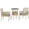 Ensemble de repas de jardin 3 pièces en poly rattan beigeCet ensemble de salle à manger de jardin ajoute une touche de classe et de confort à votre extérieur avec son look moderne et sa construction solide. Parfait pour les petites réunions sur le balcon ou le patio, il allie utilité et style, idéal pour des repas en extérieur. Matériau Durable : Cet ensemble est fait de poly rotin de haute qualité qui résiste à différentes conditions climatiques, garantissant une utilisation prolongée. Il est aussi résistant aux UV pour éviter la décoloration au soleil. Design Élégant : Avec son apparence moderne et épurée, cet ensemble apporte un joli look à n'importe quel espace extérieur. Le mélange de beige et de gris clair donne une touche stylée. Assises Confortables : Chaque chaise a des coussins d'extérieur pour un confort optimum pendant les longs repas ou rassemblements. Les coussins sont amovibles pour un nettoyage facile. Entretien Facile : Les matériaux se nettoient rapidement. Un coup d'éponge avec de l'eau chaude suffit pour garder l'ensemble en bon état, parfait pour les foyers actifs. Forme Gain de Place : Le design rond de la table optimise votre espace extérieur tout en favorisant les échanges entre vos invités, idéal pour des moments conviviaux autour d'un repas.