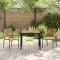 Ensemble repas jardin 3 pièces poly rotin noir et acaciaCet ensemble de repas de jardin combine un design moderne avec un cadre en acier noir et des touches de bois chaleureux. Parfait pour les espaces extérieurs comme balcons ou patios, il inclut une table pour 2 et deux chaises assorties, idéales pour manger ou chiller avec la famille et les amis. Design empilable : Les chaises s'empilent facilement, ce qui rend le rangement super rapide, surtout avec peu d'espace. Matériaux durables : Fait avec des matériaux résistants aux UV, cet ensemble peut affronter le temps sans perdre de son éclat. Chic et moderne : Le mix acier noir et bois chaleureux offre un look tendance qui embellit n'importe quel espace ext. Sièges confortables : Chaque chaise a des accoudoirs plats et un dossier agréable pour les repas ou des moments prolongés. Facile à nettoyer : Un coup d'éponge rapide, et c'est clean, l'entretien c'est du gâteau.
