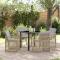 Ensemble de repas de jardin 5 pièces avec coussins beige en poly rattanCet ensemble de repas de jardin combine style et praticité, idéal pour vos repas en extérieur. Que vous soyez sur un balcon, sur une terrasse ou dans le jardin, son look moderne en noir et beige ajoute une touche classe tout en offrant du confort pour quatre personnes. Parfait pour les repas en famille ou entre amis. Construction Robuste: Le cadre solide en acier avec un revêtement en poudre assure une super stabilité et durabilité, faisant de cet ensemble un excellent choix pour l'extérieur. Design Moderne: Avec son look minimaliste, la table carrée avec un plateau en synthétique noir et les chaises en rattan beige s'intégrent parfaitement à tout style extérieur. Sièges Confortables: Le rembourrage généreux des chaises apporte du confort, permettant aux invités de profiter longuement des repas. Résistant aux Intempéries: Fabriqué avec des matériaux résistants aux UV, cet ensemble résiste aux aléas du temps tout en gardant son allure. Entretien Facile: Les surfaces lisses le rendent facile à nettoyer; un simple coup de chiffon humide suffit pour le garder comme neuf.