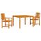 Ensemble de salle à manger extérieur 3 pcs 110 x 110 x 75 cmL'ensemble de jardin rustique est un bel ajout à votre espace extérieur, s'intégrant sans effort style et éléments naturels dans votre jardin ou votre terrasse. Fabriqué en bois d'acacia massif, cet ensemble dégage un charme rustique tout en offrant une durabilité et un confort exceptionnels. Parfait pour des repas en plein air avec des amis et la famille, cet ensemble vous invite à profiter des longues journées d'été sous le ciel ouvert. Les tons bruns terreux de l'ensemble complètent les décors extérieurs, rehaussant l'esthétique de votre espace jardin. Fabriqué en Acacia Massif : Mettant en avant la beauté naturelle et l'endurance, cet ensemble est fait en bois d'acacia massif. Connu pour sa robustesse et sa résilience, le bois présente un motif de grain exquis, ajoutant une touche rustique à votre jardin. Sa surface huilée assure une résistance accrue à l'humidité et à l'usure quotidienne, en faisant un choix fiable pour un usage extérieur à long terme. Expérience de Repas Complète : Doté d'une grande table rectangulaire et de chaises complémentaires, cet ensemble répond à tous vos besoins de divertissement en extérieur. Le design de dos fini présente une surface raffinée et présentable, rehaussant l'attrait esthétique de tous les angles. Les accoudoirs ergonomiques garantissent un confort pendant les dîners et les rassemblements. Design Prêt pour l'Extérieur : Stylisé pour l'été, cet ensemble de jardin est parfait pour toute activité en extérieur, des brunchs décontractés aux dîners complets. Savourez l'air frais et appréciez vos repas sous le soleil ou les étoiles dans le cadre extérieur parfait qui se fond harmonieusement dans votre jardin ou votre terrasse. Aesthétiques Rustiques : Dégageant un attrait rustique distinct, l'ensemble de repas ajoute une simplicité charmante à votre décor extérieur. La combinaison du bois d'acacia naturel et d'une finition huilée met en valeur l'authenticité et l'élégance de l'ensemble. Entretien Facile : Pour maintenir son apparence vibrante, il suffit d'essuyer l'ensemble avec un chiffon humide. Lorsqu'il n'est pas utilisé, protégez le mobilier avec une housse extérieure pour garantir une beauté et une fonctionnalité durables. Maximum 110 kg par siège.