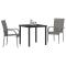 Ensemble de salle à manger pour jardin 3 pcs Gris Rotin PECe set de jardin est tout sur l'élégance moderne pour ton espace extérieur. Il est parfait pour des repas décontractés, alliant style et praticité. Son esthétique moderne s'intègre super bien aux balcons, terrasses ou jardins, leur donnant un côté chic. Rassemble tes amis et ta famille autour de ce beau set pour apprécier des repas, papoter ou juste profiter du soleil ou des étoiles. Structure en acier recouvert de poudre : Ce set de salle à manger est fait en acier recouvert de poudre, donc c'est super stable et fait pour durer. Il résiste à la rouille et à l'usure du temps, donc tu peux l'avoir toute l'année. Sa construction robuste peut supporter beaucoup de poids, parfait pas seulement pour dîner avec des potes et la famille. Surface en verre trempé : La table en verre trempé a non seulement un super rendu, mais est aussi facile à entretenir. Elle résiste aux chocs et aux rayures, garantissant une surface toujours propre et durable. Construction en poly rotin : Les assises et dossiers sont en poly rotin, connu pour son look moderne et sa durabilité à l'extérieur. Cette texture tissée apporte un vrai confort. Elle ne craint pas les UV, donc le set garde sa belle couleur même en plein soleil. Utilisation quotidienne en extérieur : La praticité est le mot d'ordre avec ce set de jardin, fait pour tous les types de météo. Que ce soit un jour venteux ou rayonnant, ce set est prêt à être utilisé tous les jours, peu importe le temps. Instructions d'entretien simples : Garder ce set en bon état est super simple. Évite les produits chimiques trop agressifs et reste sur des produits doux. Couvre-le quand tu ne l'utilises pas pour qu'il reste propre, et tu pourras en profiter pendant des années. Maximum 110 kg par siège.