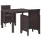 Ensemble de salle à manger de jardin 3 pcs MarronCe moderne set de jardin apporte sophistication et fonctionnalité à une variété d'espaces extérieurs. Parfait pour des repas sur terrasse ou dans le jardin, cet ensemble combine des lignes épurées avec une finition texturée pour offrir une expérience de repas stylée. Idéal pour des rassemblements d'été et des repas en plein air, cet ensemble invite à la commodité et au confort, avec des coussins pour chaque siège. La table carrée et les chaises assorties complètent facilement des designs contemporains, offrant un cadre élégant mais décontracté pour des repas en famille ou des rassemblements sociaux. Matériaux : Fabriqué entièrement en poly rattan durable, cet ensemble est conçu pour résister aux éléments extérieurs. Les propriétés résistantes aux UV garantissent sa longévité, ce qui en fait un excellent choix pour les repas d'été. Composants Inclus : Ce set de repas comprend une table et quatre chaises. Les chaises sont dotées de accoudoirs et d'un dossier qui soutient, améliorant le confort pour des périodes prolongées. Des coussins avec rembourrage en mousse offrent un confort supplémentaire. Caractéristiques / Fonction / Design : Une construction robuste et stable permet à l'ensemble de résister à une utilisation régulière dans des espaces extérieurs. Son design minimaliste complète diverses préférences esthétiques. Utilisations Recommandées : Idéal pour des patios extérieurs, jardins ou terrasses, offrant un espace raffiné pour dîner, socialiser ou simplement se détendre avec la famille et les amis. Entretien et Maintenance : Essuie les surfaces avec un chiffon humide et évite la lumière directe du soleil pour préserver l'apparence. Rentre les coussins à l'intérieur pendant les intempéries et couvre les meubles quand ils ne sont pas utilisés.