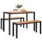 Ensemble de salle à manger de jardin 3 pièces en acier et WPC marronCet ensemble de banc de dîner d'extérieur allie style et praticité, offrant une super option pour vos repas en plein air. Avec un design moderne et un plateau en bois soutenu par des structures en métal solides, ce meuble non seulement embellit votre jardin ou patio, mais il fournit aussi un bon espace assis pour des moments conviviaux avec amis et famille. Fabriqué en métal et bois naturel, cet ensemble est fait pour durer et résister à diverses conditions extérieures. Sièges confortables pour quatre personnes, idéal pour les barbecues ou dîners en extérieur. La finition texturée de la table et des bancs ajoute un charme unique et rend vos repas encore plus agréables. Conçu pour résister aux intempéries, les matériaux supportent bien les UV, gardant le mobilier toujours beau. Simple à monter et à entretenir, cet ensemble est un choix pratique et stylé pour votre extérieur.