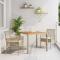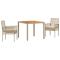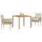 Ensemble de salle à manger de jardin en 3 pièces avec coussins crème beige poly rotinCet ensemble de salle à manger extérieur mélange style et praticité. Il a une grande table carrée et deux chaises en rotin confortables. Son design élégant embellit n'importe quel espace extérieur ; parfait pour des repas ou des moments tranquilles avec des amis. Durabilité : Fait avec des matériaux de haute qualité, comme l'osier résistant aux UV et le bois naturel ; cet ensemble extérieur peut tout affronter tout en restant beau. Design élégant : Le look contemporain moderne avec une surface en osier texturé et des formes géométriques, le rendant unique dans n'importe quel cadre extérieur. Confort avant tout : Les coussins douillets sur chaque chaise rendent les longues discussions ou dîners en famille dehors très agréables. Polyvalent et fonctionnel : Que ce soit pour un repas tranquille ou une grande fête, cet ensemble convient aux occasions décontractées comme aux événements plus chics. Entretien facile : Avec quelques astuces d'entretien, cet ensemble de salle à manger reste frais ; n'oubliez pas de rentrer les coussins à l'intérieur quand il pleut.