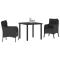 Ensemble de salle à manger de jardin 3 pièces avec coussins en rattan poly noirInstalle-toi et profite de l'extérieur avec ces chaises de jardin super confortables ! Avec un design sympa en poly rattan noir, elles apportent style et confort à ton espace extérieur. Construction Durable : Fabriquées en rattan PE, ces chaises sont solides et adaptées aux meubles d'extérieur qui supportent bien les intempéries. Confort à Ressentir : Chaque chaise a des coussins bien épais, rendant ton expérience en extérieur super agréable. La mousse douce et le rembourrage en coton épousent ton corps, parfait pour se détendre lors de journées ensoleillées ou soirées entre amis. Entretien Facile : Les housses de coussins amovibles et lavables gardent ton espace extérieur bien rangé et joli toute l'année. Stable et Fiable : Avec un cadre en acier revêtu, ces chaises offrent stabilité et soutien pour un usage quotidien. Attrait Stylé : Avec leur design moderne, cet ensemble s'accorde bien avec différents décors extérieurs, parfait pour traîner ou se relaxer. Maximum 110 kg par siège. Soyez conscient du risque de feux ouverts et d'autres sources de forte chaleur à proximité du produit.
