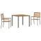 Ensemble de salle à manger de jardin 3 pièces gris en rotin synthétique et acaciaCe joli ensemble de salle à manger pour le jardin a un design moderne, avec un cadre synthétique gris clair et des accents en bois naturel. Parfait pour les espaces extérieurs comme les patios ou les balcons, il comprend une table pour 2 et deux chaises assorties, idéales pour les repas et les moments de détente. Design empilable : Les chaises s'empilent bien pour un rangement facile et ça, c'est top pour les petits espaces. Matériaux durables : Fabriqué avec des matériaux qui tiennent bien au soleil, cet ensemble est conçu pour durer et garder son look. Chic et moderne : Le mélange de gris et de bois naturel donne un look moderne qui rehausse tout extérieur. Assises confortables : Chaque chaise a des accoudoirs plats et un bon dossier pour les longs repas ou moments de détente. Facile à nettoyer : Un coup d'éponge suffit, entretenir, c'est simple.