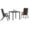 Ensemble de salle à manger de jardin 3 pièces en poly rattan marronCe set de chaises de jardin pliables mélange style et praticité, parfait pour les patios, balcons ou jardins. Les chaises ont un look moderne et sont faites pour le confort, offrant un coin agréable pour profiter de repas, se poser ou discuter avec des amis dehors. Design stylé : Les chaises ont une couleur marron tendance qui va avec différents styles extérieurs, ajoutant une touche d'élégance à tout cadre. Matériau solide : Construites en PE rattan de qualité, ces chaises sont faites pour durer et demandent peu d'entretien, résistant aux intempéries. Hauteur ajustable : Avec six options de hauteur, l'ajustement innovant les rend confortables pour tous. Assise agréable : Avec des accoudoirs confortables et un bon soutien au dos, ces chaises sont idéales pour se relâcher même après une longue durée. Design pliable : Plie facilement les chaises pour les transporter et ranger sans tracas, parfaites à utiliser partout. Maximum 110 kg par siège.