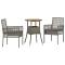 Ensemble de salle à manger de jardin 3 pièces en poly rotin grisCet ensemble table et chaises de repas d'extérieur est un super choix pour ceux qui cherchent un coin stylé et pratique pour manger dehors, ça embellit ton balcon ou patio. Avec son design épuré et ses sièges confortables, cet ensemble est parfait pour les rassemblements, rendant chaque repas agréable à l'air frais tout en accueillant deux personnes sans souci. Construction durable : Fait en rotin synthétique et métal de qualité, cet ensemble résiste à tous types de temps. Tissu résistant aux intempéries : Les coussins sont en matériau imperméable, les protégeant de la pluie et faciles à entretenir. Style chic : Le design moderne se marie avec tous les décors extérieurs, transformant ton jardin ou balcon en un endroit accueillant. Confort de siège : Les coussins doux sur les chaises assurent un confort au top, pour que tu puisses profiter des repas ou te détendre longtemps. Dimensions généreuses : La table ronde de 60 x 75 cm est idéale pour les petits espaces tout en laissant de la place pour tes essentiels de dîner.