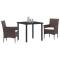 Ensemble de salle à manger de jardin , 3 pièces en poly rotin marronCet ensemble de chaises de jardin est fait pour le style et la praticité, idéal pour tout espace extérieur comme les balcons, patios et jardins. Avec un style moderne, ces chaises élégantes offrent le soutien et le confort dont tu as besoin pour des repas longs ou juste pour te relaxer. Construction Durable : Le cadre en acier solide assure une utilisation de longue durée, enveloppé de poly rattan élégant qui résiste à l'usure. Design Ergonomique : Le dossier courbé et les accoudoirs mettent en avant un confort top pour les repas ou nudis en extérieur. Résistant aux Intempéries : Conçues pour résister à la rouille et aux moisissures, ces chaises vont rester là année après année dans ton jardin. Apparence Élégante : La finition marron chic ajoute une touche moderne qui améliore tout espace extérieur et s'intègre à ton décor. Utilisation Polyvalente : Idéales pour les patios, balcons ou repas, ces chaises élèvent ton expérience de repas dehors, que tu sois en solo ou avec des amis. Maximum 110 kg par siège. Soyez conscient du risque de feux ouverts et d'autres sources de forte chaleur à proximité du produit.