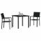 Ensemble de salle à manger de jardin 3 pièces en poly rotin noirCette paire de chaises de jardin apporte une touche stylée et pratique à tout espace extérieur, que ce soit un jardin, une terrasse ou un patio. Leur finition noire élégante et leur style en rotin embellissent votre déco extérieure tout en vous offrant une assise confortable pour les repas ou les retrouvailles. Résistance aux intempéries : Fabriquées en plastique solide, ces chaises font bonne figure par tous les temps, parfaites pour l'extérieur. Construction légère : Chaque chaise se déplace facilement, vous permettant de changer l'agencement de votre espace sans souci. Look en rotin stylé : L'effet tissé en rotin rajoute du style et les rend faciles à intégrer dans n'importe quel décor extérieur. Cadre en acier robuste : Une structure en acier solide assure d'excellents soutiens, pour que ces chaises soient toujours stables et fiables. Taille compacte : Leur design polyvalent s'intègre parfaitement dans n'importe quel patio ou balcon, optimisant votre espace extérieur tout en offrant un confort d'assise. Maximum 110 kg par siège.