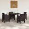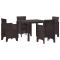 Ensemble de salle à manger de jardin 5 pcs MarronCe moderne set de jardin apporte sophistication et fonctionnalité à une variété d'espaces extérieurs. Parfait pour des repas sur terrasse ou dans le jardin, cet ensemble combine des lignes épurées avec une finition texturée pour offrir une expérience de repas stylée. Idéal pour des rassemblements d'été et des repas en plein air, cet ensemble invite à la commodité et au confort, avec des coussins pour chaque siège. La table carrée et les chaises assorties complètent facilement des designs contemporains, offrant un cadre élégant mais décontracté pour des repas en famille ou des rassemblements sociaux. Matériaux : Fabriqué entièrement en poly rattan durable, cet ensemble est conçu pour résister aux éléments extérieurs. Les propriétés résistantes aux UV garantissent sa longévité, ce qui en fait un excellent choix pour les repas d'été. Composants Inclus : Ce set de repas comprend une table et quatre chaises. Les chaises sont dotées de accoudoirs et d'un dossier qui soutient, améliorant le confort pour des périodes prolongées. Des coussins avec rembourrage en mousse offrent un confort supplémentaire. Caractéristiques / Fonction / Design : Une construction robuste et stable permet à l'ensemble de résister à une utilisation régulière dans des espaces extérieurs. Son design minimaliste complète diverses préférences esthétiques. Utilisations Recommandées : Idéal pour des patios extérieurs, jardins ou terrasses, offrant un espace raffiné pour dîner, socialiser ou simplement se détendre avec la famille et les amis. Entretien et Maintenance : Essuie les surfaces avec un chiffon humide et évite la lumière directe du soleil pour préserver l'apparence. Rentre les coussins à l'intérieur pendant les intempéries et couvre les meubles quand ils ne sont pas utilisés.