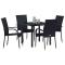 Ensemble de salle à manger pour jardin 5 pcs Noir Rotin PECe set de jardin est tout sur l'élégance moderne pour ton espace extérieur. Il est parfait pour des repas décontractés, alliant style et praticité. Son esthétique moderne s'intègre super bien aux balcons, terrasses ou jardins, leur donnant un côté chic. Rassemble tes amis et ta famille autour de ce beau set pour apprécier des repas, papoter ou juste profiter du soleil ou des étoiles. Structure en acier recouvert de poudre : Ce set de salle à manger est fait en acier recouvert de poudre, donc c'est super stable et fait pour durer. Il résiste à la rouille et à l'usure du temps, donc tu peux l'avoir toute l'année. Sa construction robuste peut supporter beaucoup de poids, parfait pas seulement pour dîner avec des potes et la famille. Surface en verre trempé : La table en verre trempé a non seulement un super rendu, mais est aussi facile à entretenir. Elle résiste aux chocs et aux rayures, garantissant une surface toujours propre et durable. Construction en poly rotin : Les assises et dossiers sont en poly rotin, connu pour son look moderne et sa durabilité à l'extérieur. Cette texture tissée apporte un vrai confort. Elle ne craint pas les UV, donc le set garde sa belle couleur même en plein soleil. Utilisation quotidienne en extérieur : La praticité est le mot d'ordre avec ce set de jardin, fait pour tous les types de météo. Que ce soit un jour venteux ou rayonnant, ce set est prêt à être utilisé tous les jours, peu importe le temps. Instructions d'entretien simples : Garder ce set en bon état est super simple. Évite les produits chimiques trop agressifs et reste sur des produits doux. Couvre-le quand tu ne l'utilises pas pour qu'il reste propre, et tu pourras en profiter pendant des années. Maximum 110 kg par siège.