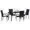 Ensemble de salle à manger pour jardin 5 pcs Noir Rotin PECe set de jardin est tout sur l'élégance moderne pour ton espace extérieur. Il est parfait pour des repas décontractés, alliant style et praticité. Son esthétique moderne s'intègre super bien aux balcons, terrasses ou jardins, leur donnant un côté chic. Rassemble tes amis et ta famille autour de ce beau set pour apprécier des repas, papoter ou juste profiter du soleil ou des étoiles. Structure en acier recouvert de poudre : Ce set de salle à manger est fait en acier recouvert de poudre, donc c'est super stable et fait pour durer. Il résiste à la rouille et à l'usure du temps, donc tu peux l'avoir toute l'année. Sa construction robuste peut supporter beaucoup de poids, parfait pas seulement pour dîner avec des potes et la famille. Surface en verre trempé : La table en verre trempé a non seulement un super rendu, mais est aussi facile à entretenir. Elle résiste aux chocs et aux rayures, garantissant une surface toujours propre et durable. Construction en poly rotin : Les assises et dossiers sont en poly rotin, connu pour son look moderne et sa durabilité à l'extérieur. Cette texture tissée apporte un vrai confort. Elle ne craint pas les UV, donc le set garde sa belle couleur même en plein soleil. Utilisation quotidienne en extérieur : La praticité est le mot d'ordre avec ce set de jardin, fait pour tous les types de météo. Que ce soit un jour venteux ou rayonnant, ce set est prêt à être utilisé tous les jours, peu importe le temps. Instructions d'entretien simples : Garder ce set en bon état est super simple. Évite les produits chimiques trop agressifs et reste sur des produits doux. Couvre-le quand tu ne l'utilises pas pour qu'il reste propre, et tu pourras en profiter pendant des années. Maximum 110 kg par siège.