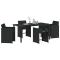 Ensemble de salle à manger de jardin 5 pièces avec coussins Noir Rattan polyCes chaises de patio sont le bon mix entre style moderne et praticité, parfaites pour bouffer dehors ou juste chill. Elles sont en rattan PE durable avec des coussins noirs super classes, elles en jettent et sont confortables pour tes moments entre amis. Matériau durable : Fabriquées en rattan PE de qualité, ces chaises résistent aux éléments et demandent peu d'entretien, donc tu pourras en profiter pendant des années. Sièges confortables : Chaque chaise a des coussins épais amovibles conçus pour être super confortables lors de toutes les occasions, que ce soit pour un dîner ou un moment chill en extérieur. Rangement peu encombrant : Le dossier pliable malin se plie, rendant le rangement des chaises simple quand tu ne les utilises pas, combinant commodité et style. Résistantes aux intempéries : Conçues pour être utilisées en extérieur, ces matières tiennent sous les rayons UV et les intempéries, garantissant qu'elles gardent leur belle apparence et fonctionnent bien même dans des conditions difficiles. Design chic : Avec leur look moderne, ces chaises s'intègrent à n'importe quel espace extérieur, ajoutant une touche de classe à ton jardin, balcon ou patio. Maximum 110 kg par siège. Soyez conscient du risque de feux ouverts et d'autres sources de forte chaleur à proximité du produit.