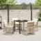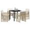Ensemble de salle à manger de jardin 5 pièces avec coussins beige poly rattanCet ensemble de salle à manger de jardin est parfait pour la vie en extérieur moderne. Avec son style sobre beige et noir, il embellit n'importe quel coin en offrant un espace confortable pour quatre. Idéal pour les repas en famille ou les retrouvailles entre amis. Construction Robuste : Le cadre en acier solide assure stabilité et durabilité, c'est un excellent choix pour l'extérieur. Design Moderne : Avec un style minimaliste, la table carrée et les chaises rembourrées s'intègrent bien à la déco extérieure. Assise Confortable : Le rembourrage des chaises les rend super confortables, parfaits pour profiter des repas et des boissons longtemps. Résistant aux Intempéries : Fait avec des matériaux résistants aux UV, cet ensemble de salle à manger tient tête aux intempéries tout en gardant son charme. Entretien Facile : Les surfaces lisses permettent de nettoyer facilement ; un simple coup de chiffon humide suffit pour garder tout beau.