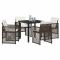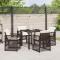 Ensemble de salle à manger de jardin 5 pièces avec coussins marron poly rattanCet ensemble de salle à manger de jardin est parfait pour le style de vie extérieur moderne, combinant style et praticité. Idéal pour balcons ou patios, son look marron et noir apporte du cachet à n'importe quel espace extérieur et offre des sièges confortables pour quatre, parfaits pour des repas en famille ou se détendre avec des amis. Construction Solide : Son cadre en acier offre stabilité et durabilité, ce qui en fait un excellent choix pour l'extérieur. Aspect Tendance : Avec son design minimaliste, la table carrée et les chaises rembourrées se fondent facilement dans le décor extérieur. Chaises Confortables : Le bon rembourrage sur les chaises apporte du confort, vous permettant de profiter des repas pendant des heures. Résistant aux Intempéries : Fabriqué avec des matériaux UV, ce set peut affronter les éléments sans perdre son charme. Facile à Nettoyer : Les surfaces lisses se nettoient facilement ; un coup de chiffon humide et c'est nickel.