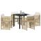Ensemble de salle à manger de jardin 5 pièces avec coussins en poly rattan beige.Cet ensemble de jardin de 5 pièces est un excellent choix pour tes espaces extérieurs. Il combine des caractéristiques pratiques avec un design moderne, créant une ambiance décontractée. Il comprend une table rectangulaire et quatre chaises stylées, toutes conçues pour résister aux intempéries tout en t'offrant un coin cosy pour profiter de tes repas. Cadre Solide : Le cadre en acier robuste offre une grande stabilité, assurant que ton ensemble de jardin résiste à toutes les conditions climatiques. La finition en poudre lui donne une surface résistante à la rouille, lui permettant de rester stylé à travers les saisons. Confort : Chaque chaise vient avec des coussins moelleux pour une expérience de restauration super confortable. Idéal pour les brunchs ou les dîners, ces chaises te permettent de te relaxer pendant que tu manges. Résistant aux Intempéries : Conçu pour l'extérieur, cet ensemble est fait de matériaux résistants aux intempéries, ce qui te permet de dîner en plein air peu importe la saison. En plus, c'est super pratique à nettoyer. Style Moderne : Son design contemporain s'harmonise avec plein de styles de déco extérieure, que ce soit classique ou moderne. Les lignes épurées et la finition mate égaient ton espace extérieur, le transformant en un lieu tendance pour chiller. Gain de Place : Son design compact te permet de glisser les chaises sous la table, ce qui est top pour économiser de l'espace sur ton patio, gardant ton espace extérieur propre et accueillant.