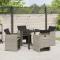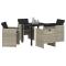 Ensemble de salle à manger de jardin 5 pièces avec des coussins en poly rotin gris clair.Cet ensemble de dining de jardin mélange style et confort pour les moments en extérieur, parfait pour se relaxer dans ton jardin ou sur ton balcon. Avec son rattan poly gris clair chic et ses coussins anthracite, tu peux profiter de repas ou juste passer du temps avec tes amis en toute classe. Matériau solide : Fabriqué en rattan PE, un matériau synthétique qui ressemble au vrai rattan, cet ensemble est léger, facile à nettoyer et conçu pour durer à l'extérieur. Sa finition robuste fait qu'il garde un bon look pendant longtemps. Sièges confortables : Chaque chaise a des coussins épais pour un confort agréable, parfait pour rester dehors longtemps. Profite à fond de ton jardin avec un confort incroyable. Rangement pratique : Les dossiers pliants permettent de ranger les chaises facilement quand tu ne les utilises pas, super pour les petits espaces ou ceux qui veulent du pratique. Beaucoup plus simple à entretenir : Les housses des coussins se retirent et se lavent, ce qui rend tout ça bien simple pour que ton espace extérieur reste nickel. Cadre solide : Le cadre en acier enduit de poudre assure une bonne stabilité, supportant jusqu'à 242.5 lbs par chaise pour que ça soit toujours sécuritaire. Maximum 110 kg par siège. Soyez conscient du risque de feux ouverts et d'autres sources de forte chaleur à proximité du produit.