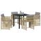 Ensemble de salle à manger de jardin 5 pièces avec des coussins en rotin synthétique beige.Cet ensemble de salle à manger de jardin mixe style et praticité. Parfait pour les repas en extérieur ou pour chiller. Il comprend quatre chaises comfy et une table solide, créant un espace sympa pour vos amis et votre famille. Cet ensemble de jardin est fabriqué en rattan PE durable de couleur beige mixte, lui donnant un look extérieur lumineux mais robuste qui imite le rattan naturel. Le rattan PE est simple à nettoyer, nécessitant juste un coup de chiffon de temps en temps pour maintenir votre espace de salle à manger bien net. Les coussins de l'ensemble sont épais en tissu gris clair, offrant une assise confortable que vous dînez ou que vous vous détendez dehors. Le tissu doux est agréable, rendant cet ensemble parfait pour de longues soirées en extérieur. Le dossier pliable des chaises se replie pour un rangement facile lorsqu'elles ne sont pas utilisées, idéal pour les personnes avec un espace extérieur limité. Construites avec un cadre en acier enduit de poudre, ces chaises sont stables et conçues pour durer à travers différents types de temps, s'assurant qu'elles supportent une utilisation quotidienne en extérieur. Cet ensemble allie esthétique et praticité, s'intégrant parfaitement dans les patios, balcons ou jardins. Profitez de repas ou détendez-vous dehors en sachant que ce mobilier peut gérer vos rassemblements animés.