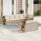 Ensemble de salle à manger pour jardin 7 pcs Beige polyrotinLe set de jardin moderne est parfait pour n'importe quelle terrasse ou jardin avec son design chic et fonctionnel. Fusionnant simplicité et élégance, il améliore les repas en plein air pour la famille et les amis. Avec ses lignes nettes et sa déco minimale, il offre un look moderne qui s'intègre bien dans des espaces actuels. Son ambiance accueillante favorise les rencontres, permettant de profiter de l'air libre confortablement et avec style. Matériaux de qualité : Ce set de jardin robuste en poly rotin résiste à tous types de météo, garantissant un look et un usage durables. La surface en verre trempé n'est pas juste esthétique, mais tient aussi face à l'usure quotidienne. Ces matériaux sont choisis pour marier durabilité et style, faisant de ce set un choix fiable pour vos moments en extérieur. Composants inclus : Les accoudoirs en bois d'acacia ajoutent un contraste naturel et offrent du confort. De plus, son dos bien fini assure une belle apparence sous tous les angles, et les cadres en acier garantissent une base solide pour des repas sûrs et stables. Fonctionnalité simple : Les lignes rectangulaires du set laissent beaucoup d'espace pour la vaisselle et la déco, parfait pour des repas en extérieur. Le design des pieds en fait un mobilier qui allie stabilité et élégance moderne. Utilisations polyvalentes : Idéal pour l'extérieur, ce set convient aux terrasses, jardins ou balcons, permettant de prendre les repas dehors avec style. Que ce soit pour un petit rassemblement en famille ou une fête plus grande, il offre une ambiance chic et polyvalente pour toutes les occasions. Entretien et maintenance : Pour garder votre set en bon état, utilisez des housses de protection quand il n'est pas en usage. Un essuyage avec un chiffon humide suffira pour garder les surfaces propres, prolongeant sa durée de vie à travers les saisons. ,