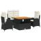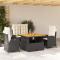 Ensemble de salle à manger pour jardin 7 pcs Gris et marronCet ensemble de repas pour le jardin est une belle combinaison de style moderne et de fonctionnalité. Sa forme rectangulaire élégante en fait un excellent ajout à tout espace extérieur, parfait pour les dîners en plein air avec vos proches sous le ciel. Matériaux de qualité : L'ensemble combine poly rattan et bois d'acacia massif pour apporter une belle touche esthétique et une couleur naturelle. Le poly rattan est résistant aux intempéries et garantit que votre mobilier dure dans le temps. Le bois d'acacia ajoute une touche chaleureuse et riche à l'ensemble. Confort optimal : Avec des accoudoirs en bois d'acacia et un bon soutien, cet ensemble permet de profiter des repas prolongés. Un cadre robuste assure la stabilité, et la grande table rectangulaire s'adapte à différentes configurations de repas. Fonctionnalité facile : Le design des pieds est simple, mais super solide, pour une bonne stabilité. Cela complète bien le style moderne de cet ensemble qui sait équilibrer utilité et chic. Les pieds en poly rattan sont faits pour supporter un usage quotidien. Conçu avec soin : Parfait pour l'extérieur, cet ensemble comble les amoureux du plein air pour leurs repas. Son look actuel s'accorde parfaitement avec la nature, pour créer une belle ambiance de repas en plein air. Conseils d'entretien pratiques : Pour prolonger la durée de vie de l'ensemble, pensez à le couvrir quand vous ne l'utilisez pas ! Cela prévient l'usure pendant les saisons tranquilles. Un petit coup d'éponge avec un chiffon sec suffit à garder l'ensemble en bon état. ,