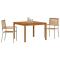 Ensemble de salle à manger de jardin beige 3 pcs BeigeCet ensemble de jardin moderne est une addition polyvalente conçue pour les rassemblements extérieurs et les moments de repas décontractés, améliorant l'esthétique de votre jardin ou de votre terrasse avec son style contemporain et épuré. Conçu pour s'intégrer parfaitement dans n'importe quel cadre de jardin, l'ensemble équilibre fonctionnalité et design simpliste, caractérisé par ses lignes nettes et son absence d'ornementation excessive. Que vous accueilliez un barbecue estival ou que vous profitiez d'un dîner tranquille sous les étoiles, cet ensemble de salle à manger offre un retrait paisible pour la famille et les amis au milieu de la luxuriance de votre jardin. Design Moderne Élégant Cet ensemble de salle à manger de jardin présente une esthétique minimaliste caractérisée par des lignes épurées et une finition mate non réfléchissante, créant un élément à la fois élégant et fonctionnel, parfait pour n'importe quel jardin ou terrasse. La combinaison d'acier enduit de poudre et de poly rattan élève son attrait contemporain tout en garantissant une construction robuste qui résiste à une utilisation quotidienne. Composants Fonctionnels L'ensemble comprend une table rectangulaire, des chaises avec des sièges et des dossiers en bois d'acacia massif, et des accoudoirs en poly rattan, chacun fabriqué avec une attention méticuleuse aux détails. Ces composants de haute qualité offrent confort et durabilité, rendant les repas ou la détente en extérieur un vrai plaisir. Matériaux Résistants aux Intempéries Construit avec des matériaux résistants aux UV et à l'eau, cet ensemble de salle à manger fait face au soleil ardent et aux averses imprévues. Sa résilience garantit une utilisation prolongée tout en préservant ses couleurs vives et sa texture, offrant une tranquillité d'esprit tout au long des saisons. Design Empilable Pratique Conçu pour un stockage facile, les chaises peuvent être empilées lorsque non utilisées. Cette fonctionnalité en fait une solution gains de place idéale pour les jardins avec un espace de stockage limité, vous permettant de maximiser votre zone extérieure sans sacrifier le style ou le confort. Entretien Facile Pour maintenir son apparence impeccable, il suffit d'essuyer les surfaces avec un chiffon humide. Une housse de protection est recommandée par temps sévère pour prolonger sa durée de vie. Un entretien minimal signifie plus de temps à profiter de votre espace de vie extérieur.