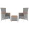 Ensemble de salon de jardin 3 pcs gris poly rotin et acaciaCe salon de jardin, avec un design élégant et contemporain, sera un excellent choix pour vous détendre dans le jardin. Matériau durable : la résine tressée, également connue sous le nom de rotin poly, résiste aux intempéries et est facile à nettoyer. Elle reste belle à l'extérieur pendant une longue période. Elle offre une excellente qualité, commodité et un aspect esthétique. Cadre stable : l'acier est un matériau exceptionnellement dur et résistant. Il offre robustesse et stabilité. Fonction d'inclinaison : les chaises de jardin de cet ensemble de mobilier de jardin sont spécialement conçues avec une fonction d'inclinaison afin que vous puissiez régler le dossier selon votre confort. Expérience de siège confortable : avec les coussins de siège bien rembourrés, les chaises sont très confortables. Dessus de table pratique : le dessus en bois d'acacia massif est parfait pour placer ou afficher vos divers objets essentiels. Il est beau en apparence et facile à nettoyer. Remarque : Pour que vos meubles d'extérieur restent beaux, nous vous recommandons de les protéger avec une housse imperméable. Bon à savoir : Pour faciliter au maximum le montage, chaque produit est livré avec des instructions. Maximum 110 kg par siège. Soyez conscient du risque de feu ouvert et d'autres sources de forte chaleur à proximité de l'appareil.