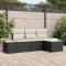 Ensemble de salon de jardin 4 pièces en polyrotin noir avec coussinsCet ensemble de canapé de jardin mixe style et confort, ajoutant une touche moderne à ton expérience en plein air. Parfait pour les balcons et patios, ce canapé sectionnel modulaire invite à se rassembler et à se relaxer, accueillant confortablement jusqu'à quatre personnes avec ses coussins spacieux. Modulaire et Polyvalent : Change le réglage pour coller à ton espace et style--super pour les barbecues ou juste traîner. Confort Luxueux : Les coussins en polyester doux sont parfaits pour se plonger avec un bon livre ou une tasse de thé. Matériaux Résistants aux Intempéries : Fait en poly rattan résistant aux UV, cet ensemble de canapés supporte les intempéries tout en ayant du style. Un choix malin pour tes espaces extérieurs. Entretien Simple : Les housses de coussins amovibles sont super faciles à nettoyer--un petit coup d'éponge, et c'est réglé. Assises Spacieuses : Cet ensemble de canapés peut accueillir jusqu'à quatre personnes, parfait pour les réunions de famille ou traîner avec des amis. Le pouf ajoute du confort et de la flexibilité.