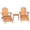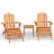 Ensemble de salon de jardin Adirondack 3 pcs bois acacia solideProfitez de votre temps libre avec ce salon de jardin en bois de style Adirondack. Bois d'acacia massif : cet ensemble de salon est fabriqué en bois d'acacia massif. Le bois d'acacia massif est un matériau naturel magnifique. Le bois d'acacia est un bois dur tropical, qui est dense, robuste et durable. Expérience d'assise confortable : le dossier haut légèrement incliné et les accoudoirs larges vous permettent de vous asseoir confortablement tout en vous relaxant. Le repose-pied ergonomique complète parfaitement le siège de jardin, ce qui le rend encore plus confortable. Table pratique : la table basse est parfaite pour placer vos boissons, aliments et autres objets de décoration. Design pliable : la chaise Adirondack peut être facilement pliée lorsqu'elle n'est pas utilisée, pour un rangement et un transport faciles. Bon à savoir : Pour faciliter au maximum le montage, chaque produit est livré avec des instructions. Remarque : Pour que vos meubles d'extérieur restent beaux, nous vous recommandons de les protéger avec une housse imperméable. Maximum 110 kg par siège.