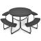 Caractéristiques techniques : Couleur : noir Matériaux : métal, HDPE Dimensions hors tout : 190 x 76 cm Diamètre de la table : 110 cm Taille du banc : 96 x 28 cm Hauteur du banc : 48 cm Diamètre du trou du parasol : 4,8 cm Capacité maximale de la table : 135 kg Poids maximum de chaque siège : 225 kg Poids net : 27,5 kg