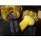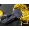 Passementerie de fil couleur jonquille à tournante en fil argenté.