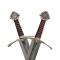 Lame en acier inoxydable polie non tranchante. De chaque côté du pommeau est enchâssé une pièce de monnaie de l'ordre des templiers avec inscription latine et symboles.