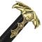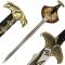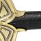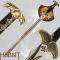 En effet, vous trouverez donc une garde ainsi qu'un pommeau à la finition dorée et un manche recouvert de cuir écaille noir.