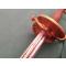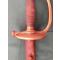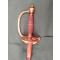 Epée Francaise d´uniforme modéle 1816 possiblement de 1852.Clavier basculant, coquille symetrique une face avec de gravées de une aigle relevé , fusée bois avec filigrane argent avec petits manques ,Pommeau olive. Fourreau de cuir avec signes the usages.Lâme double avec deux goutiéres. état moyen