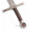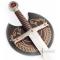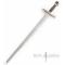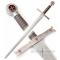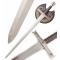 Magnifique reproduction de l'epee du Grand Maître templier Jacques de Molay. Lame a gorge en acier. Garde et pommeau en acier. Manche en acier recouvert de simili cuir marron. Livre avec plaque mural en bois. - Longueur de la lame : 77,5 cm - Largeur de la lame (maxi) : 4,7 cm - Largeur de la garde : 20 cm - Longueur totale : 98 cm - Poids (epee seule) : 2,6 kg Produit de qualite.
