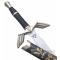 Superbe reproduction de l'epee Zelda de Link, protagonite du jeu video Zelda. Reproduction de la Master Sword en Edition Black. Lame en bois peint avec inscription sur tout le long. Symbole de la triforce a la base de la lame. Ornement en ABS a chaque extremite du fourreau. Livree avec un magnifique fourreau en ABS recouvert de symbole sur tout le long. Longueur totale epee dans fourreau : 124cm Longueur totale epee sans fourreau : 107cm Longueur de la lame : 77cm Poids epee et fourreau : 810grs Poids epee : 360grs Ideal pour les cosplays ou pour la collection.
