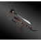 Poignée, appelée ulu, dont le pommeau en andouiller, est creusé de cavités garnies de cheveux. Section de ligatures tressées achève la fusée.