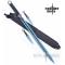 Pack comprenant une replique ninjato et deux kunais. Ensemble en acier inoxydable, très resistant. Lame de couleur bleu et noir. Manche tresse de coton noir. Longueur d'un kunai : 16cm. Longueur du replique Ninjato : 68,5cm. Longueur de la lame : 47cm Poids replique : 315grs Poids Kunai : 35grs Livre dans un etui en nylon. Equipe d'une sangle pour le transport a l'epaule.