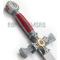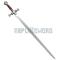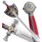 Reproduction épée des templiers richement décoré. Sa lame en acier inoxydable non coupante. Garde et pommeau en acier décoré. Manche en acier recouvert de velours rouge. Edition rouge.