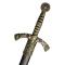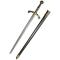 Cette épée médiévale est une réplique impressionnante de l'armement des chevaliers templiers du XIIIe siècle. Sa garde élégante arbore des motifs emblématiques de l'Ordre, dont une croix templière et des symboles gravés tels que des chevaliers, un griffon et un bouclier, ajoutant un caractère authentique et historique à cette pièce de collection. Le pommeau porte également un sceau templier distinctif.