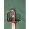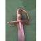 La poignée bois et cuir,( petites manques ) combine un protège-disque perforé avec deux trous semi-circulaires et six trous ovales, une seule articulation et deux fines pattes de 51 mm de long s'étendant depuis l'avant, et avec de marquages regimentaux, " R5 B 31 " Regiment cinque Bataillon trente et un et aprés " E A " et 1873 ,marques de depôt, languettes maintiennent solidement la gorge de la gaine, ajoutant un niveau supplémentaire de sécurité et de fonctionnalité. Pas de fourreau.Cette epée est affûté par le Reglement ( Ordonnance ) Portugaise.Usée en Espagne aussi.